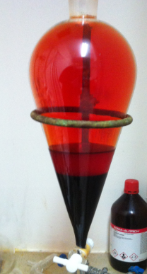 - Wash with 60ml conc H2SO4 (layers need ~ 1 hour to settle)(Br2 is on bottom)